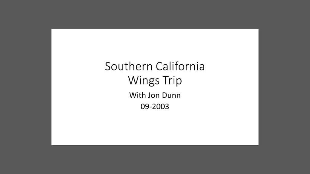 Southern California Birding Finistierras with Jon DunnAugust 2003 Southern California Birding Finistierras with Jon DunnAugust 2003 Home Palouse Memories June 2018 Sax-Zim Bog: A Polar Vortex Finistierra 2019 Backyard Birds of Rochester, New York July 2020 Big Bend & Texas Hill Country April 2021 Critters! November 2021 Colorado: A Summer Stay in Estes Park June 2022 North American Grouse Music Gallery